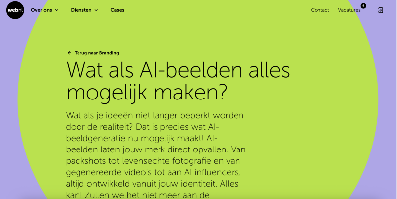 Tegenwoordig wordt AI steeds vaker ingezet binnen marketing en daar kan een marketingbureau niet omheen. WebNL vindt het belangrijk om voorop te blijven lopen in AI-technologie en hierover transparant te communiceren richting klanten. Daarom heb ik de opdracht gekregen om twee AI-pagina’s te schrijven en inhoudelijk te vullen voor WebNL. Deze pagina’s heb ik zelfstandig uitgewerkt en gepubliceerd in WebKey.